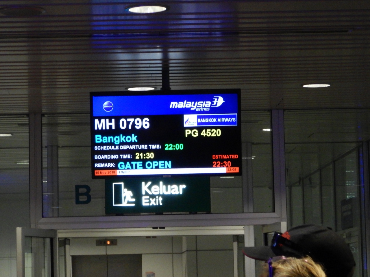 成田から搭乗したJAL723便はサテライトに到着。エアロトレインでメインターミナルのコンタクトピアに移動した。乗り継ぎの案内所を探し、バンコク行きの便の搭乗口を確認し、ラウンジで搭乗時刻を待った。空港内は案内がわかりやすいので迷うことなく、目的地に行くことができた。