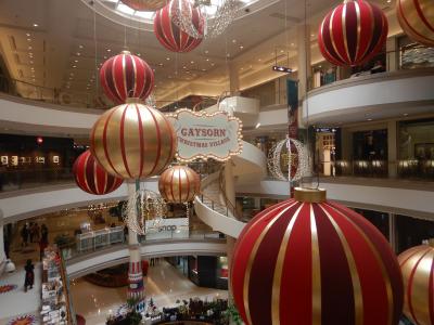 ビッグCから歩道橋を歩き、ゲイソンビレッジに入る。ここの吹き抜けの飾りを見るのが楽しみにしている。11月後半という時期だからクリスマスの飾りになっているだろうと思ったが、気球のようなものがぶら下がっているだけだった。「Christmas Village」の文字があるのでクリスマスの飾りだということが分かった。この後はいつもと同じく、BTSチットロム駅に向かった。
