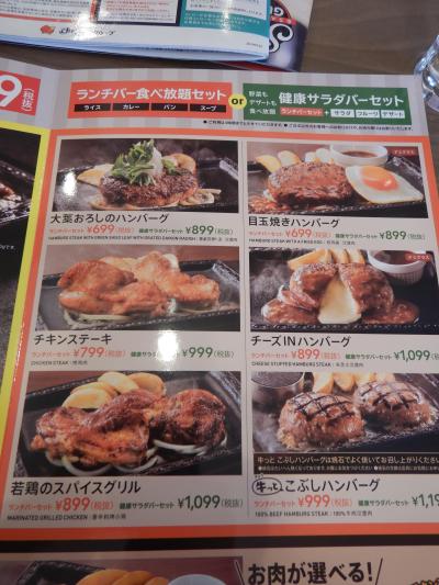 遅めのランチで大根おろしハンバーグランチバーセットを食べてみた。値段は税別で699円。ガストのセレクトランチと同じ。それならご飯とカレーが食べ放題だし、ハンバーグもこちらの方がおいしい。同じすかいらーくグループでもステーキとハンバーグを食べるなら、こちらがおすすめだ。
