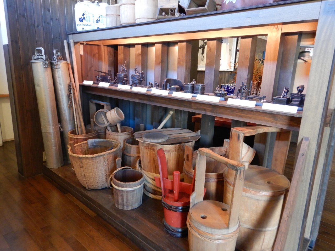 前回来た時は酒蔵が運営している施設なのに日本酒の試飲がなかったのにはがっかりしたが、今回は試飲があってよかった。日本酒の試飲だけではなく、酒粕ソフトクリームをまた食べてみた。ほんのりと酒粕の香りがするが、アルコール分はない。展示品の酒造りの道具や歴代の日本酒の宣伝用のポスターを見た。