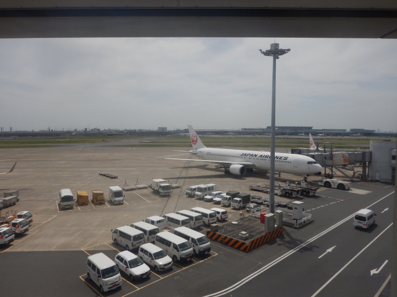 窓際の席に座ると滑走路がよく見えるのが気に入っている。景色を眺めたり、新聞を読んだりしながら過ごす。サクララウンジは生ビールのサーバーがあるので、搭乗前に2~3杯飲む。国内線のラウンジは食べ物が「おかき」ぐらいしかないのが残念だが、仕方がない。