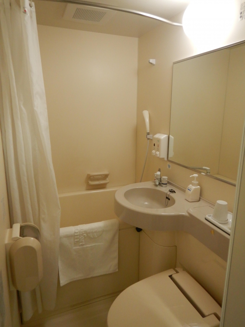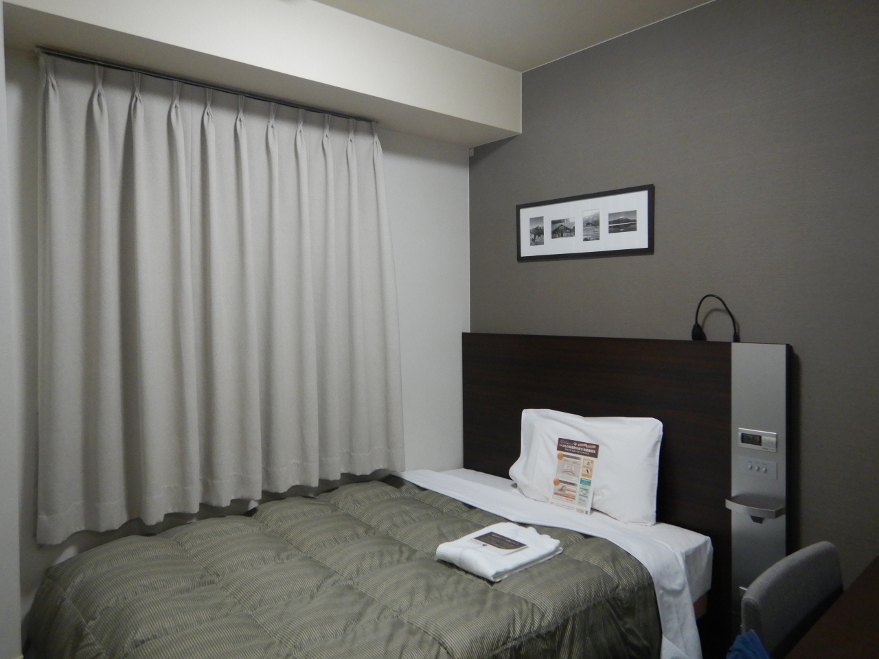 客室はやや狭い。ビジネスホテルのシングルだからこんなものだろう。バスタブはあるが小さい。毛布、自転車の無料貸し出しあり。