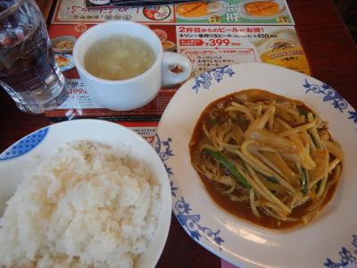 バーミヤンで日替わりランチを食べたには初めてだった。入口に本日の日替わりランチの案内あり、わかりやすくてよかった。本日の日替わりランチは「豚肉とたっぷり野菜の汁だくカレー炒め」。カレーの匂いが食欲を誘う。「野菜たっぷり」とあるが、もやしが大部分の印象だった。追加で餃子を注文。ファミレスの餃子とは思えないほど、肉汁が多く、美味しかった。