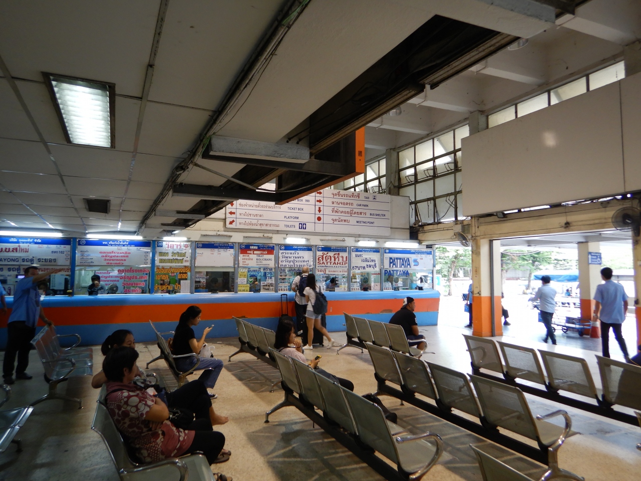 戦勝記念塔付近からロットトゥーが出ていたが、市内のバスターミナルに分散した。アランヤプラテート行きはエカマイから出るということで行ってみた。行先はアランヤプラテートではなく、ローングルアマーケットというのが正式名称らしいが、アランヤプラテートで通じた。「アランヤプラテート」というとチケット売り場を指さしで示され、チケットを買うことができた。