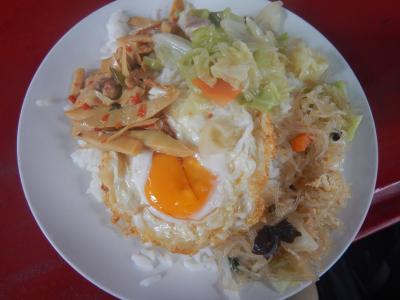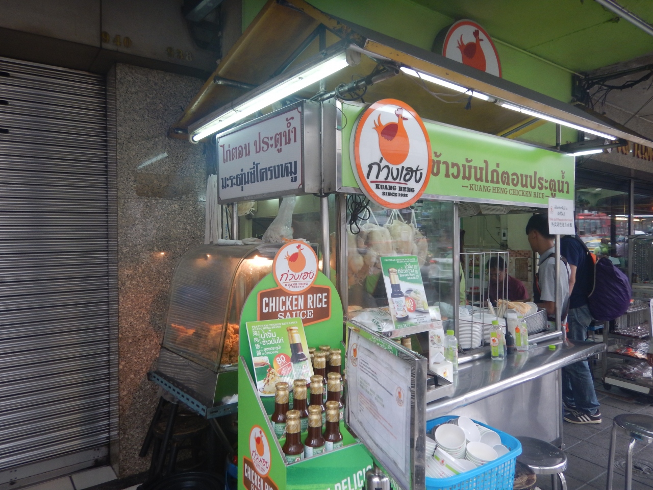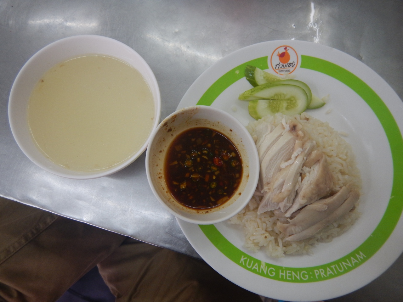 通称みどりのカオマンガイ。近くのピンクのカオマンガイことガイトーンプラツーナムが午後2時から5時まで休憩時間なので、こちらでカオマンガイを食べた。大盛りで50バーツ。こちらの方が創業60年と歴史がある。味もなかなかよかった。