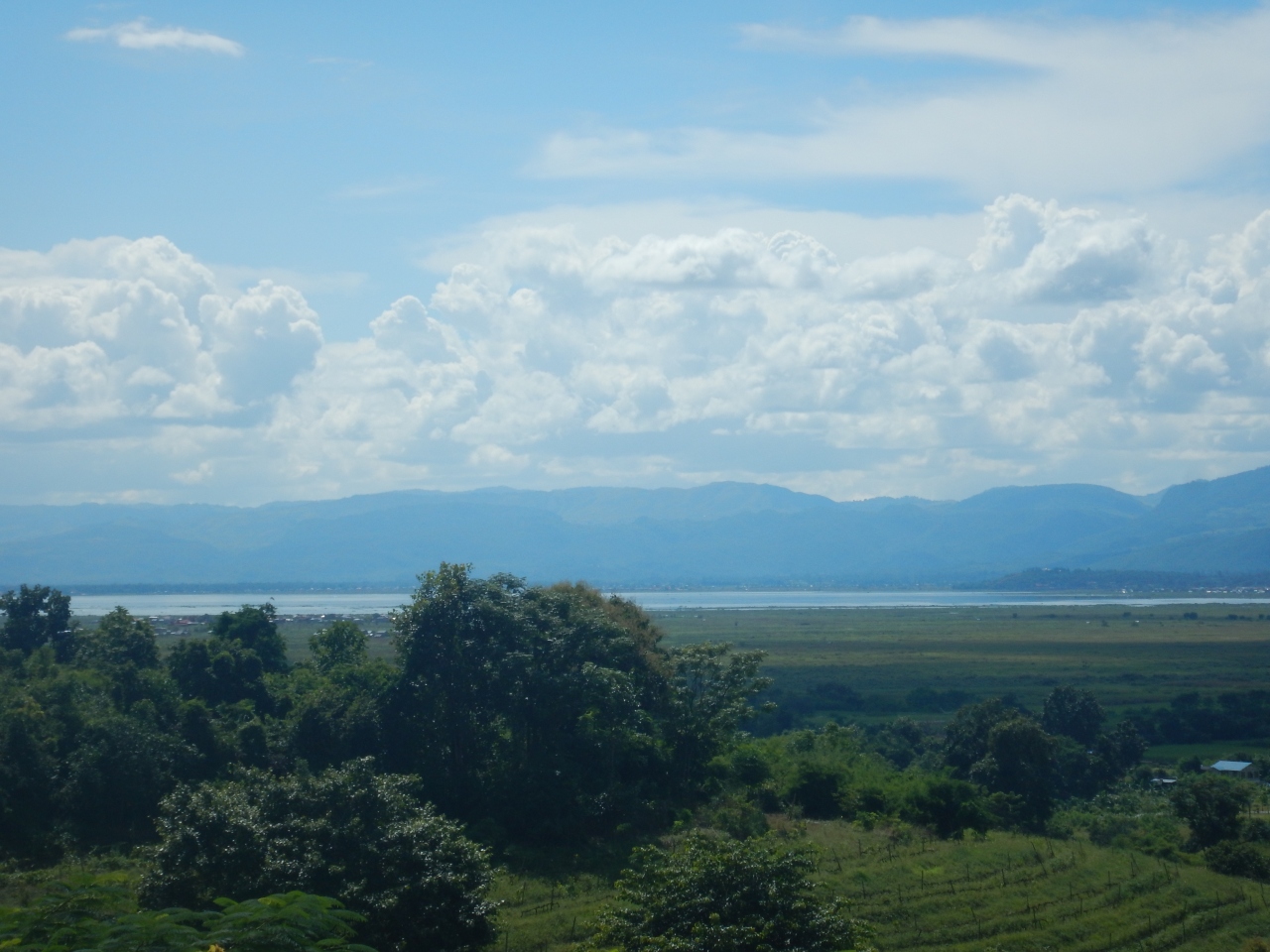 レストランの目の前にはブドウ畑は広がっており、その背後にはインレー湖が見える。絶景とまでは行かないが、よい景色だ。- 旅行時期