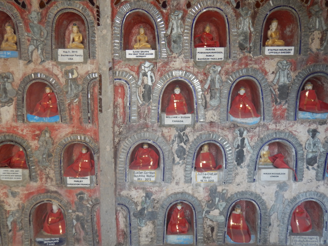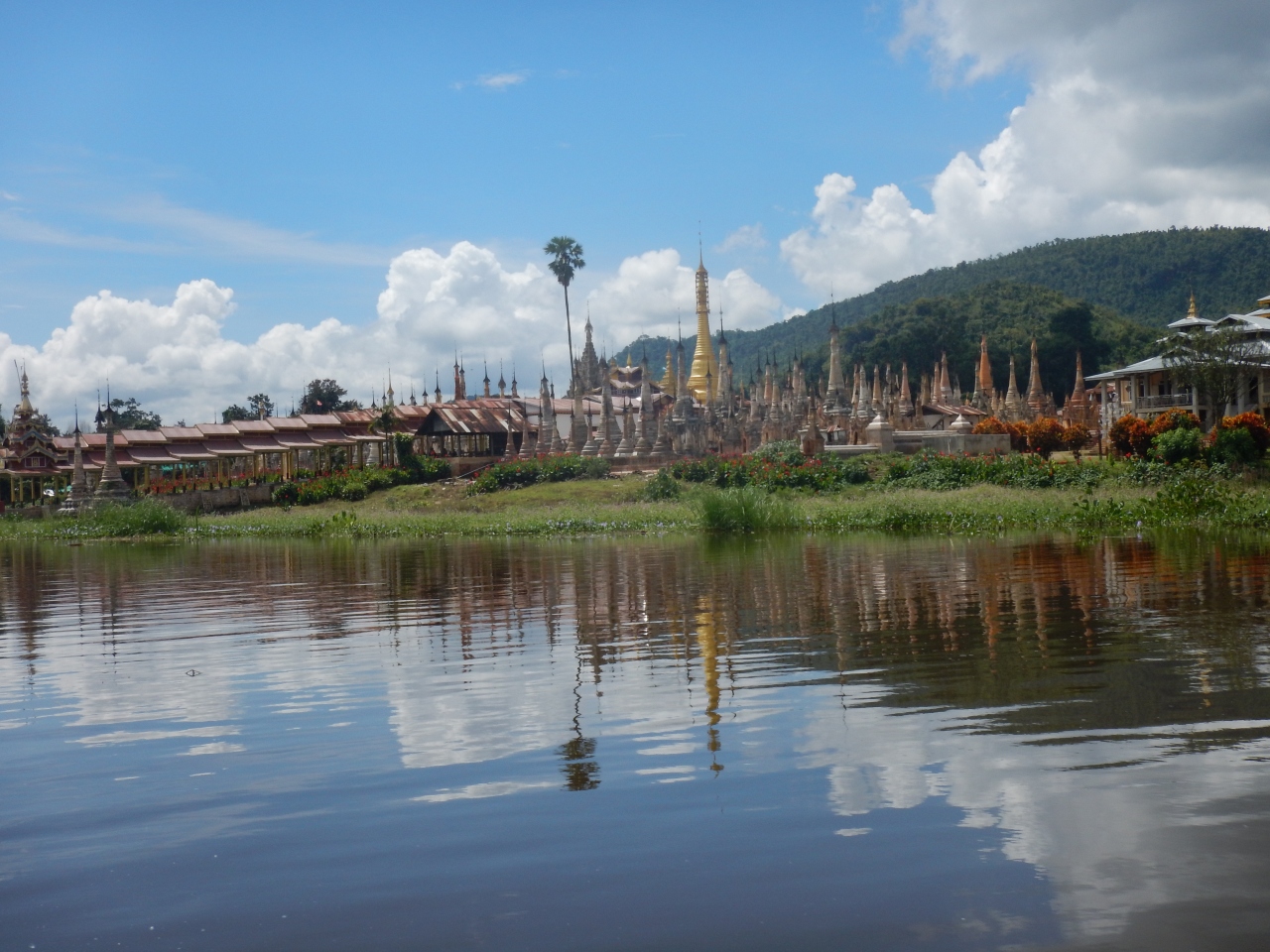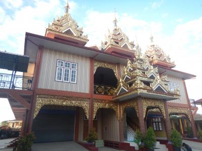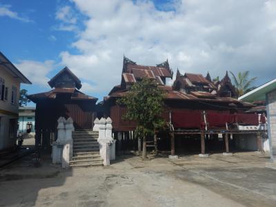 宿で借りた自転車で行ってみた。場所はインレー湖のチェックポイントの先にある。木造の僧院の建物はかなり古い。回廊の窪みに仏像が収められている。ビエンチャンの寺院の思い出した。僧院の周りに新しい仏塔が建設中なのが印象に残った。