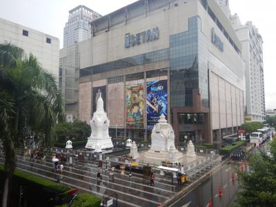 スカイウォークからエスカレーターに乗ると、セントラルワールドの3階に入ることができる。そこを歩き、伊勢丹の5階に行く。スーパーで商品を見る。そして伊勢丹側から外に出て、プラ・トリムルティにお参りするのがいつものパターンだ。- 旅行時期