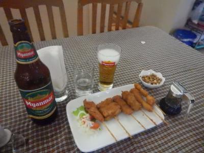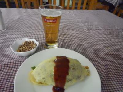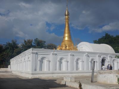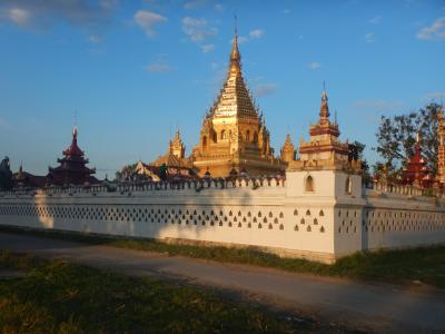 インレー湖付近のパゴタというと湖の中にあるのが有名だが、これはニャウンシュエの街中にあるので歩いて行ける。2階建てのような建物で、独特のつくりをしている。シャン風の建物で角が多いつくりだとの解説があった。夕陽に映えた金色のパゴタが美しかった。