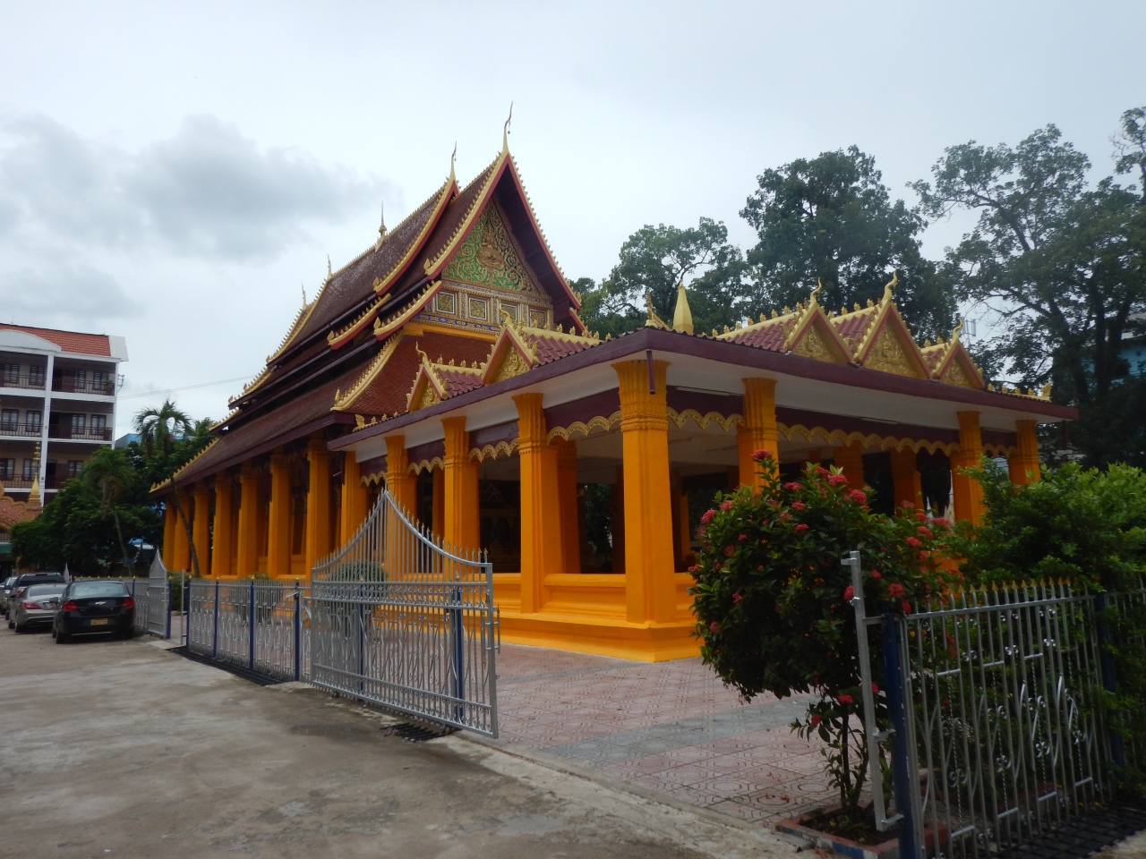 メコン川の近いファグーム通りを歩いていたらあったので境内に入ってみた。本堂は2重の屋根のやや大きいもの。中には入れなかった。夜になると向かい側で、ナイトマーケッツが開かれ、寺院のは直接関係ないが、周辺は賑やかになる。
