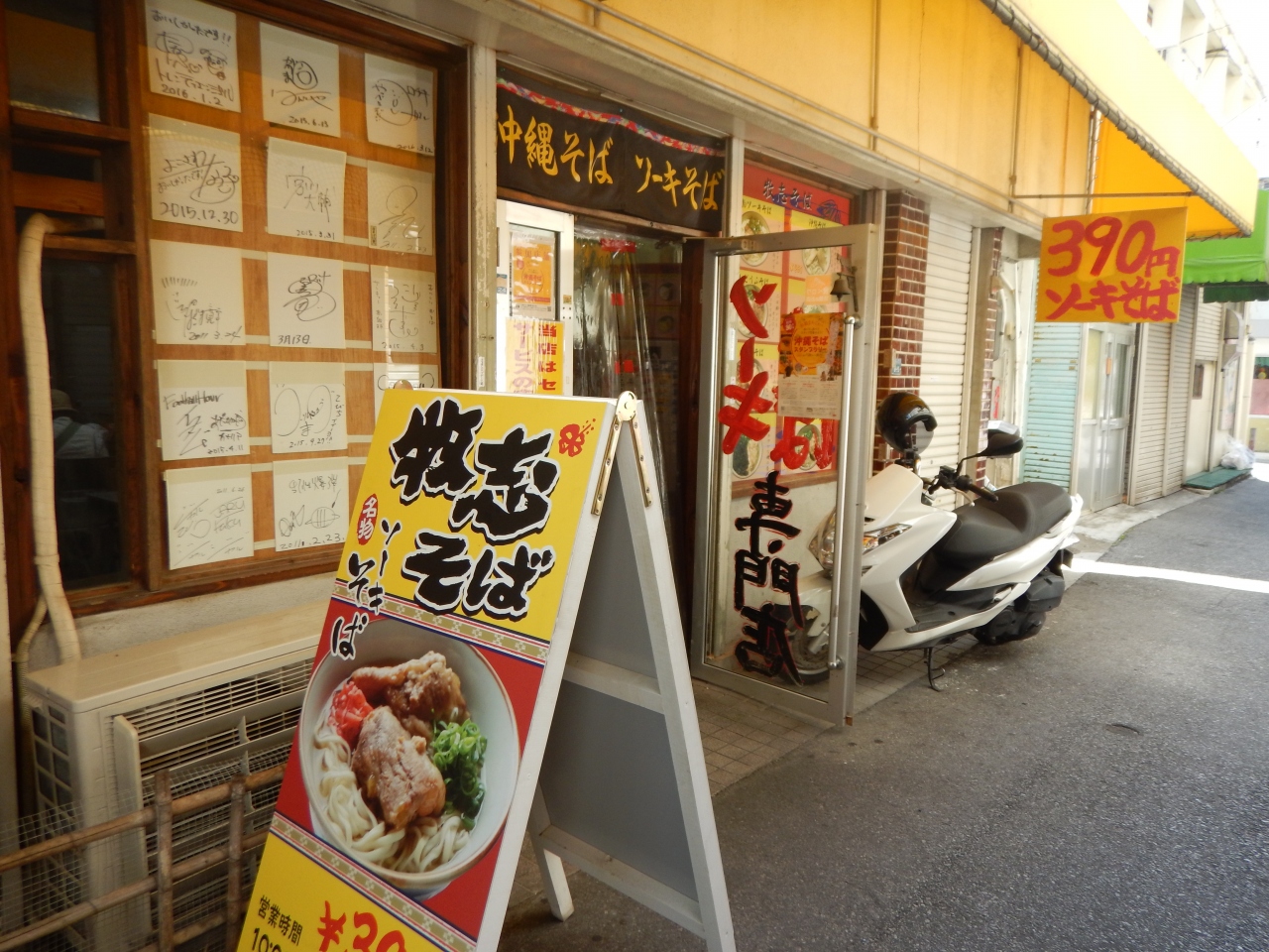沖縄そばのスタンプラリーの地図をもらう。その地図の中に「田舎北店」のある当たりに「牧志そば」という店が載っていたので行ってみたら「田舎北店」のあったところだった。どういう事情で店名が変わったのか、詳しくは聞かなったが、不愛想なおばさんがやっていた「田舎」よりも若い男性がやっている「牧志そば」の方が雰囲気はよい。味、値段ともに変わりはなかった。