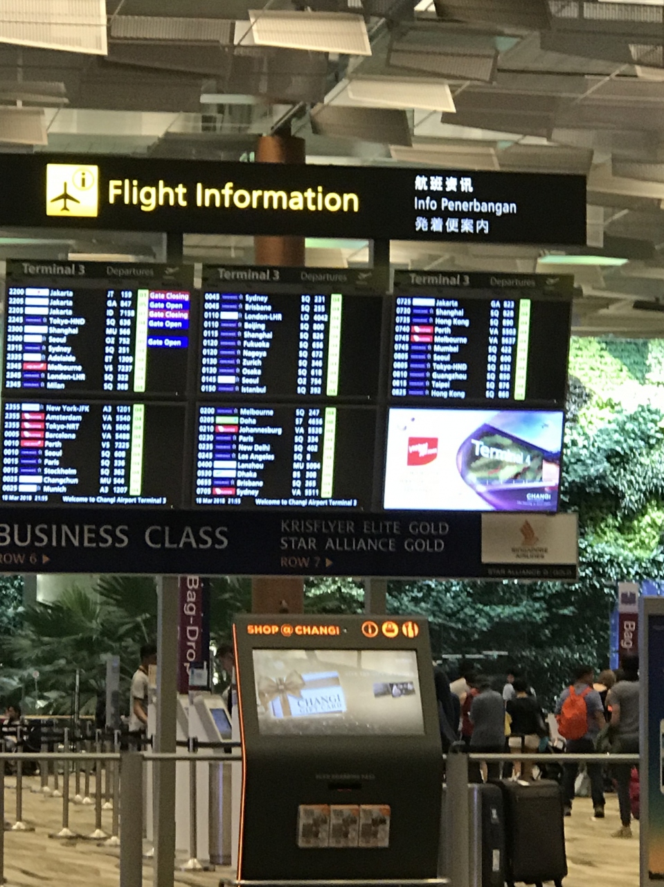 シンガポール空港利用でしたので、ターミナル3をりようしました。広いターミナルですがとても素敵でした。免税店もたくさんあります。さすが世界一のターミナルです!シンカポール航空のラウンジを利用しましたが、座席数がたくさんありますが、とにかく人が多いです。奥の方が空いているのでオススメです。シャワールームは羽田のANAラウンジが格段に素晴らしいです。