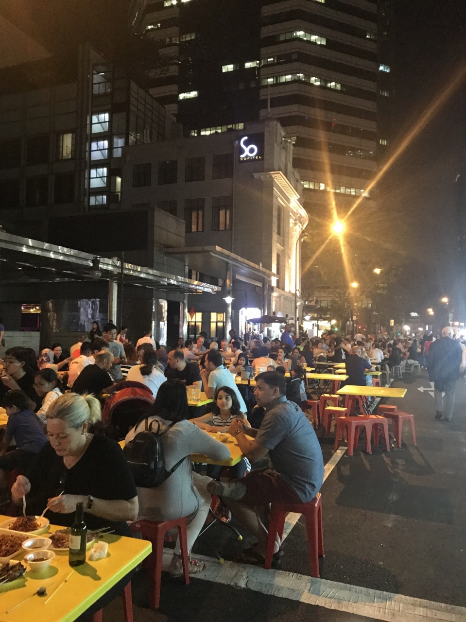 ラオパサホーカーズのストリートに夕方から開店する、屋台に行きました。ビル群の中のストリートを閉鎖してあり、とても解放的です。サテーとタイガービールはとても美味しいです。