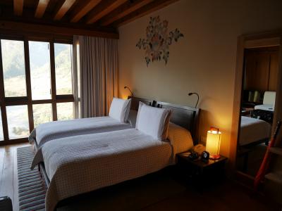 法定料金の上の追加料金なので高いですけれど、ティンプーでは清潔安全な新施設がそんなに数がないので、非常によいと思います。ブータンらしさには欠けますがみなさんたいてい一日目がティンプーでしょうから、ブータンらしさの前の準備には非常によいと思います。温水プールもいいですし、部屋の冊子にウエルカムドリンクのチケットがありますので好きなときにカフェでいただけます。従業員の方の意識が一番高かったように思いますので新ホテルとしてお勧めできます。