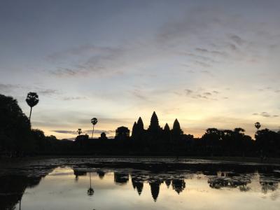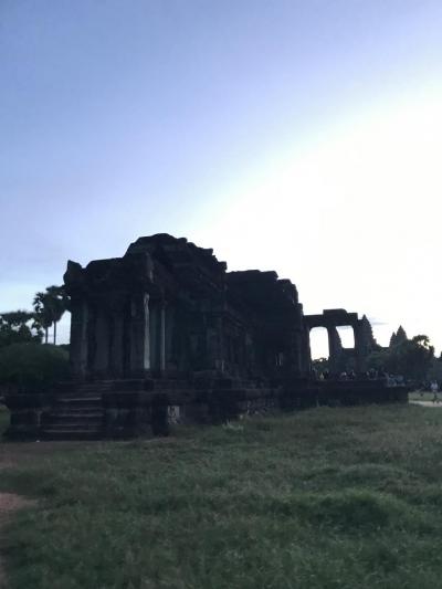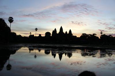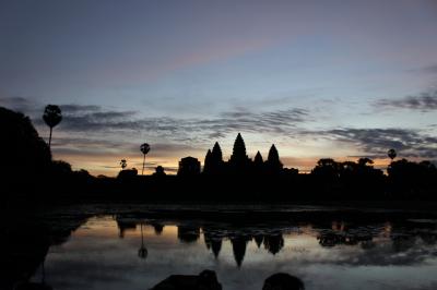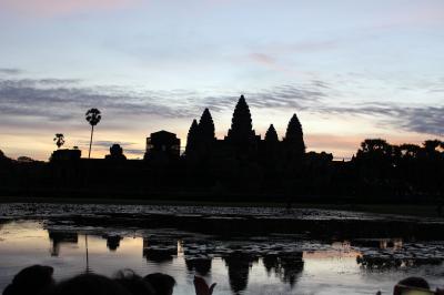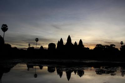夜明け前のアンコールワット前。日の出はもうすぐ!!