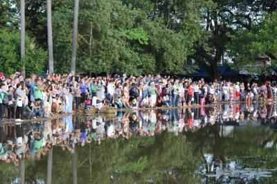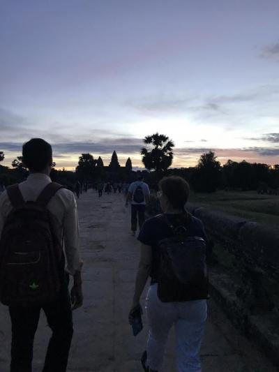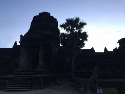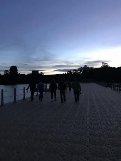 夜明け前のアンコールワット前。日の出はもうすぐ!!