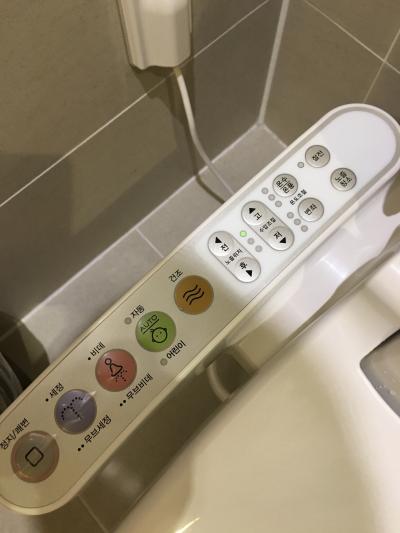ソウルはたいがいどこもそうですが、水圧弱くて排水がとても悪いからトイレに紙を流せないのが困りもの…
