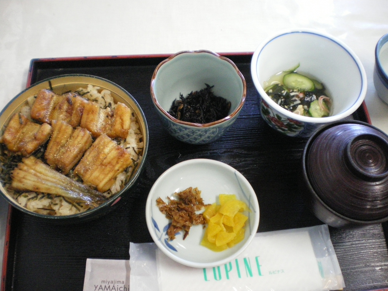 団体料金は不明ですが、一般の場合、あなご飯定食は1600円。