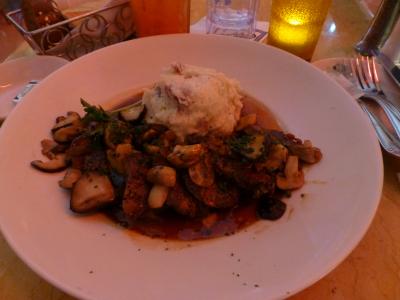 アメリカと言えばステーキでしょうと店員さんに相談して、赤ワインソースのステーキに決定!