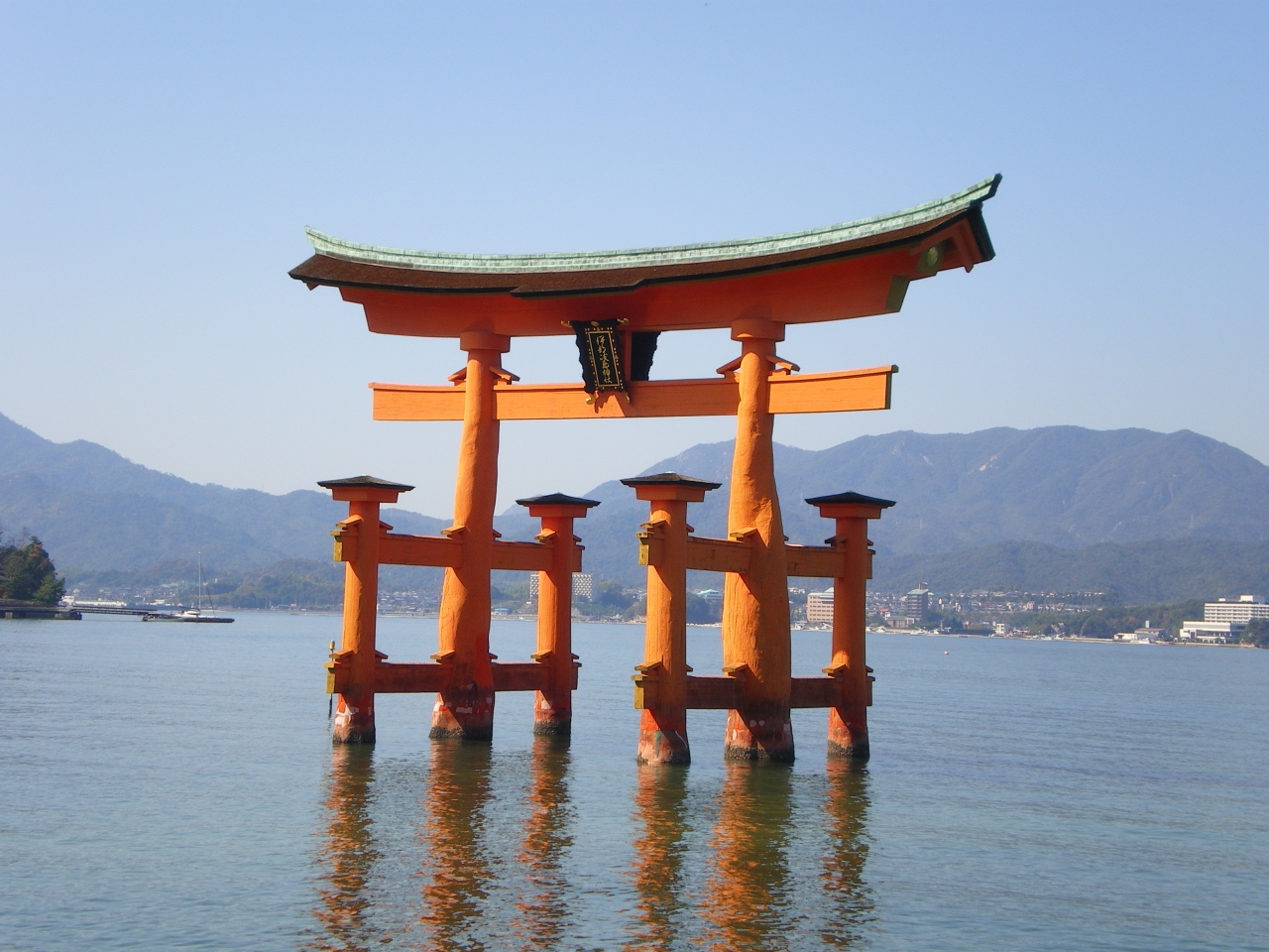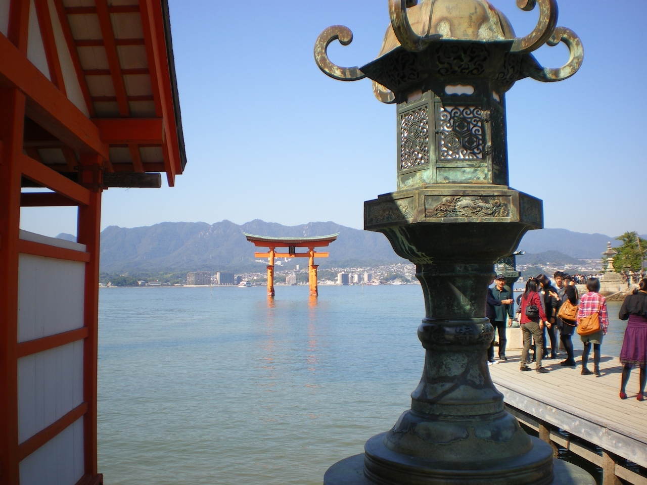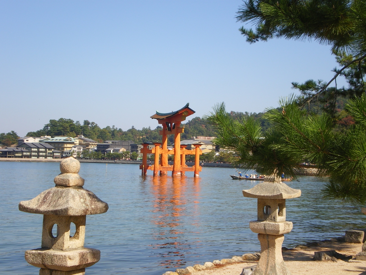 引き潮だと鳥居まで歩いて行く事が出来ますが、満潮時は趣のある小船で渡る事が出来ます。