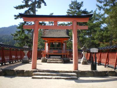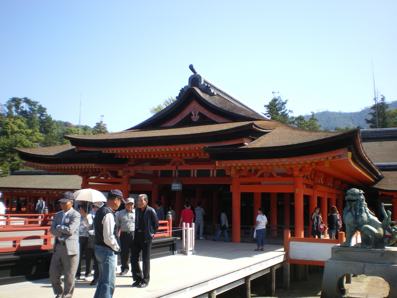 この日はとてもお天気が良くて、空と海と社殿の朱色が映えてとても綺麗。