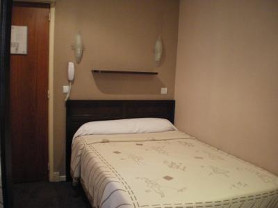 - ベットはダブル。客室は狭いですが、一人なら充分です。スーツケースも広げられます。