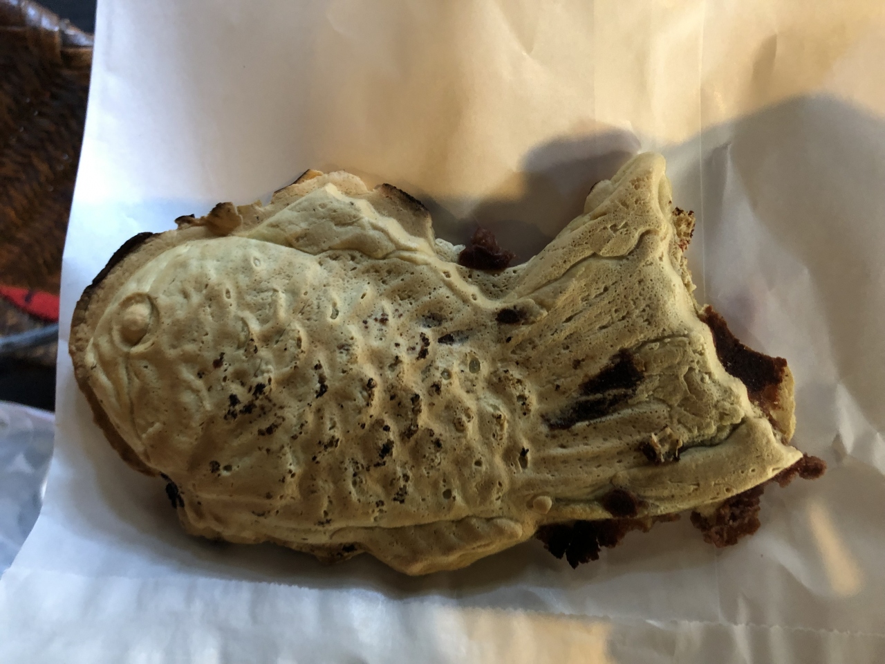 焼き立て熱々のたい焼きをお店の前で頂きました。