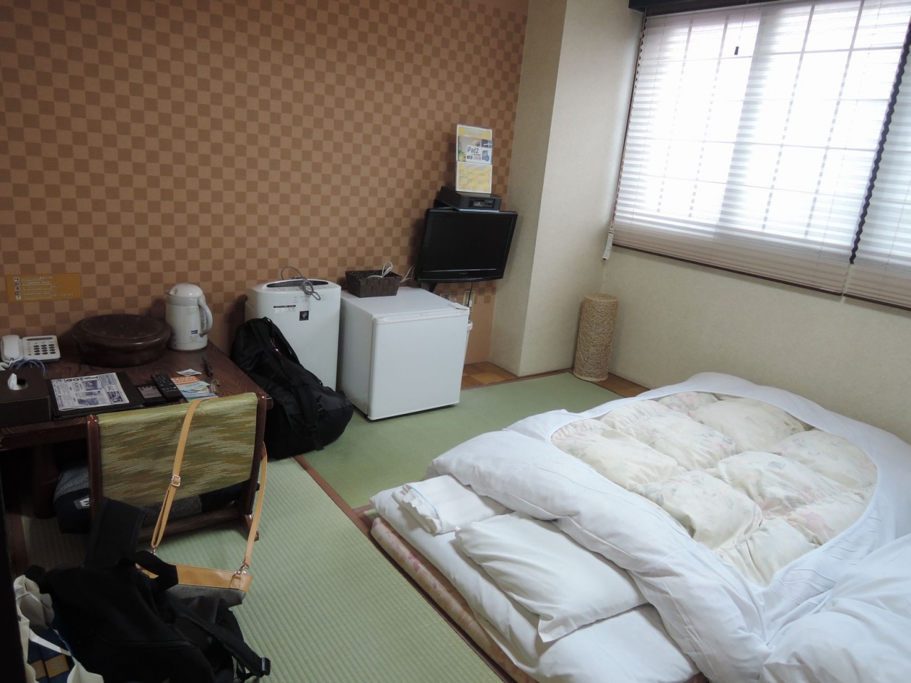 【客室】広くは有りませんでしたが、床にゴザ状のものが敷かれ、気持ちが良いので裸足で過ごしちゃいました(笑)。横長のライティングデスクもコンセント豊富で使い勝手が良いです。お風呂は一般的な作りでバスタブをシャワーカーテンで仕切るタイプ。でも1Fに大浴場があるので、そちらを利用していました。手ぶらで行けるので大変便利でした。