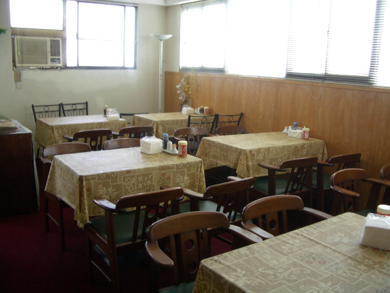 格安ツアー御用達の山水閣大飯店。室内は少し古めのビジネスホテルといった感じだが、必要十分のものはそろっている。ペットボトルの水も毎日2本サービス。冷蔵庫には水以外入ってないので好きなものを買って入れられるのも良い。宿泊した503号は大通りに面した部屋だったが、寝るには困らなかった。フロントは日本語OK、部屋にセーフティBOXは無いがフロントで預かってくれる。MRT民権西路駅まで私の足で徒歩6分、晴光市場や屋台街などにも近く、とにかく立地のよさがウリ。我々のような食べ歩き好きにはお勧め。写真は12階の食堂。チェックアウト後もここのトイレを貸してもらった。