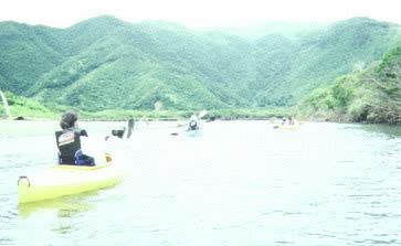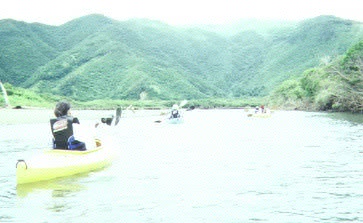 住用川に架かる越次橋わきの空き地に車を止め、 手続きが終了するとライフジャケットとパドルが手渡される。出発前にパドルの使い方などの説明があり、 その後出発。川でのカヌーは初めてなので多少の心配はあったものの行きはスイスイ。途中浅すぎて川底にカヌーが乗り上げてしまい、仕方なくカヌーを引いて川の中をジャブジャブ歩いたりもしたが・・・。 ツーリング中聞こえるものは、パドルが水面を揺らす音と鳥のさえずり。目線が水面に近いこともあり、「自然」を感じることが出来る。30分ほど進んだ所で一度岸に上陸し、 今度は川沿いのマングローブ林へ。上陸後はインストラクターの方がここに住む生物や植物について説明をしてくれる。 この時地面に白い小石のようなものがたくさん見えるのは、何千何万というカニ(ハクセンシオマネキ)。5cm 位の小さなカニが、近寄ると一斉に地面の巣穴へもぐり込む。時々バカなカニは 素穴を間違え頭隠して尻隠さず状態になったりして・・・その光景が何ともユーモラスで 何回みても飽きない。帰路は潮のせいか、流れが出てきてなかなか前へ進まず、運動不足の我が身には少々こたえたが 何とか無事帰還。1時間半のツアーでインストラクター付きで2500円。