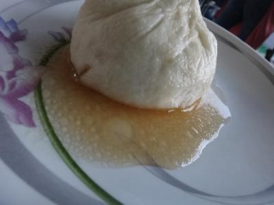 1個15TWDの湯包が陶器皿にのってやってきました。