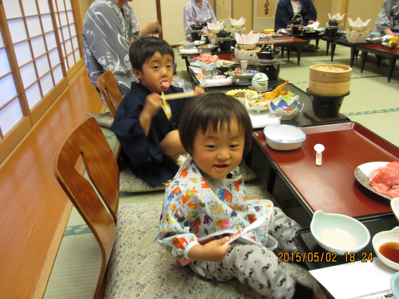 まずは下足番の方の昔気質の接客に、すっかり満足。部屋は家族ごとに分散して頂き、それぞれの家族ものんびりできました。お料理については、とくに和牛が美味しかった。食べきれないほどの品数で美味であることは言うまでもなく、朝食までそんな感じでした。