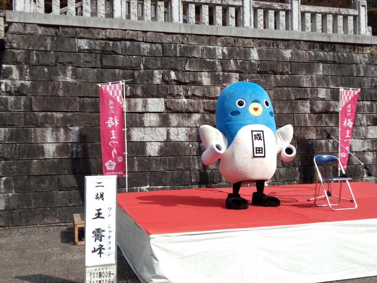 イベントで甘酒の無料配布もあり、そこに成田市のゆるきゃら「うなりくん」登場。