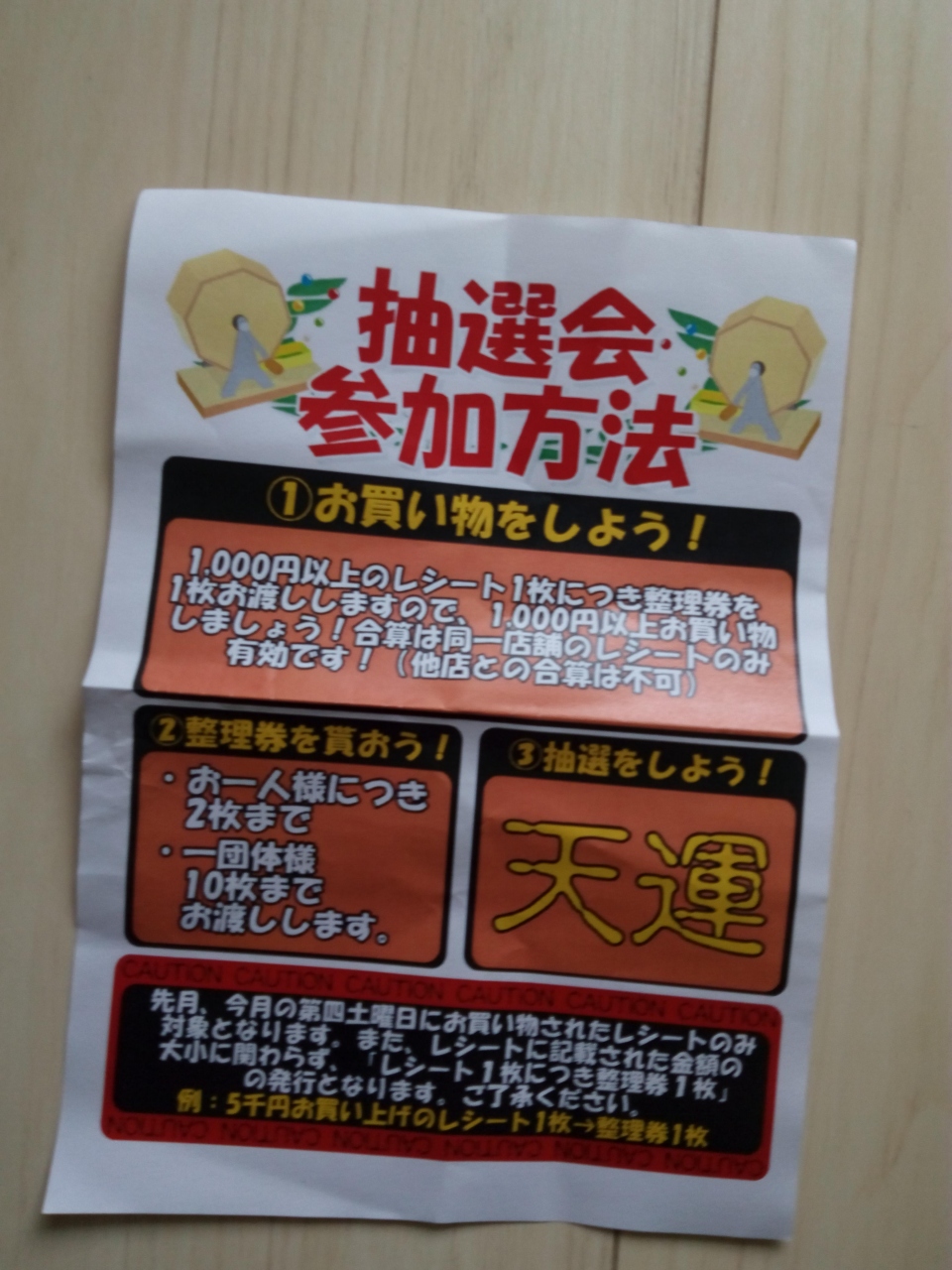 1店舗1,000円以上で、抽選会に参加できる整理券がもらえます。