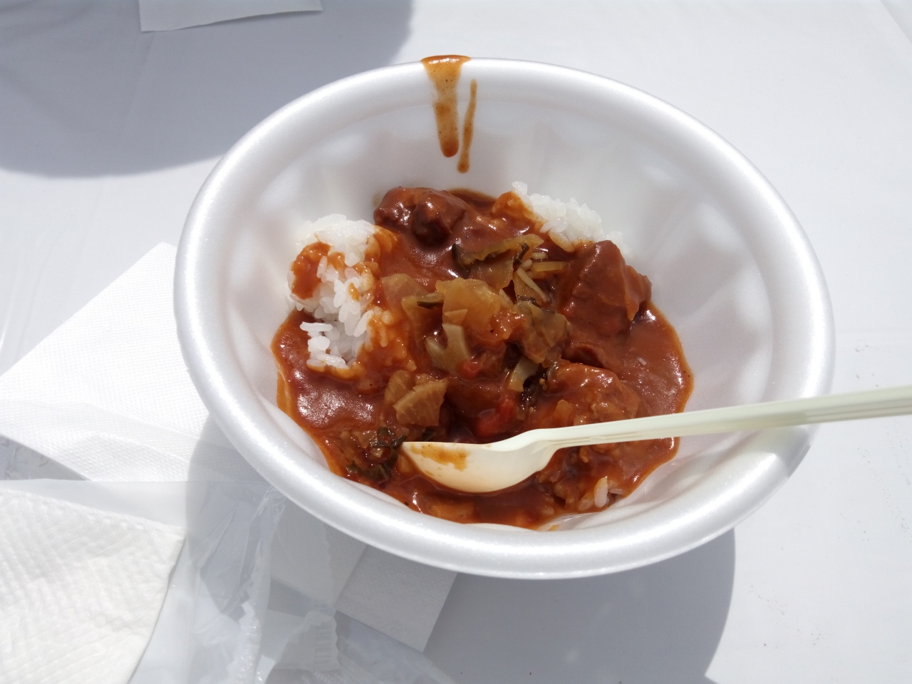 みそ汁を配布するテントの近くにいたので、あまり並ばずにゲット!!