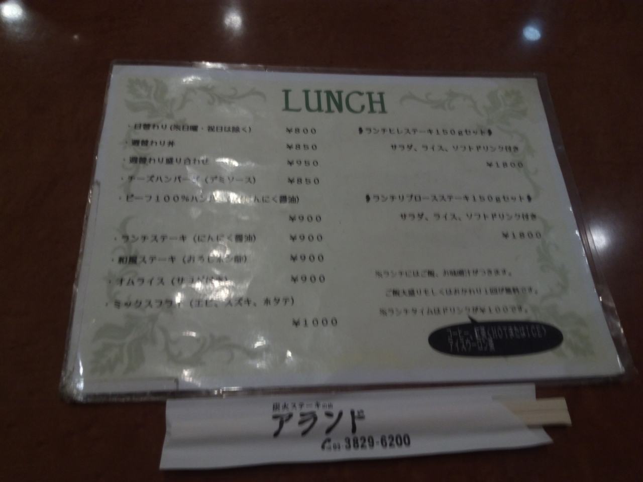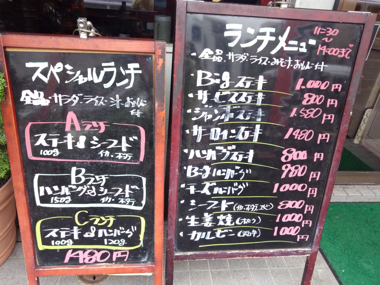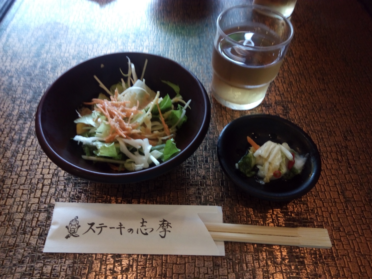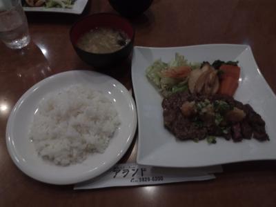 ステーキランチBIG(150g)サラダ、ライス、味噌汁、お新香付