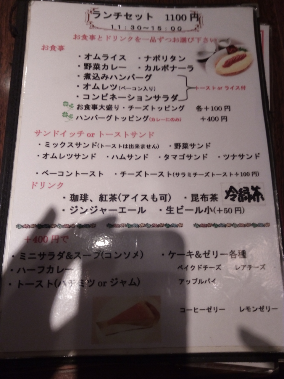 パンが手作りでおいしそうだったのですが、このメニューでは選べなかったのか聞かれなかったので、チョイスできなくて残念。