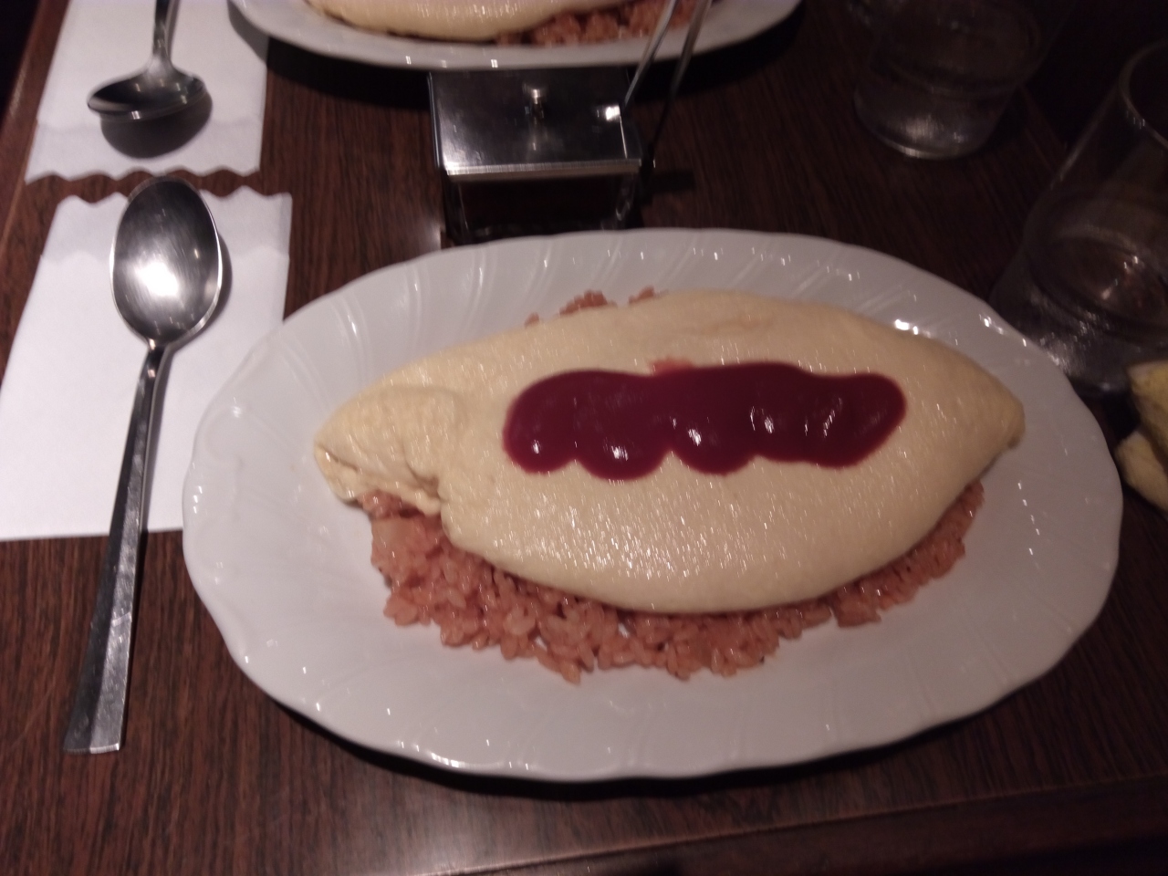 名物オムライス。フワフワ、とろとろでおいしい。飽きない味。