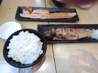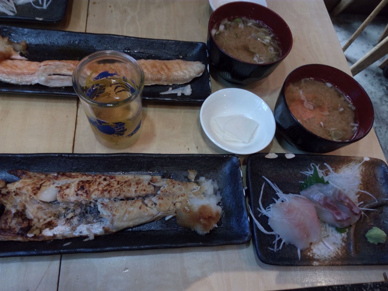 ホッケが思ったより、大きい。相方の頼んだ鮭ハラスも同様に細長いのが出てました。