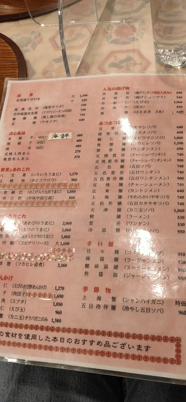 水餃子、小籠包、チャーハン、五目かた焼きそばを注文。