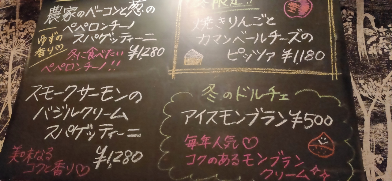 ドリンク、前菜1品付きのパスタランチ、アイスモンブランを注文。