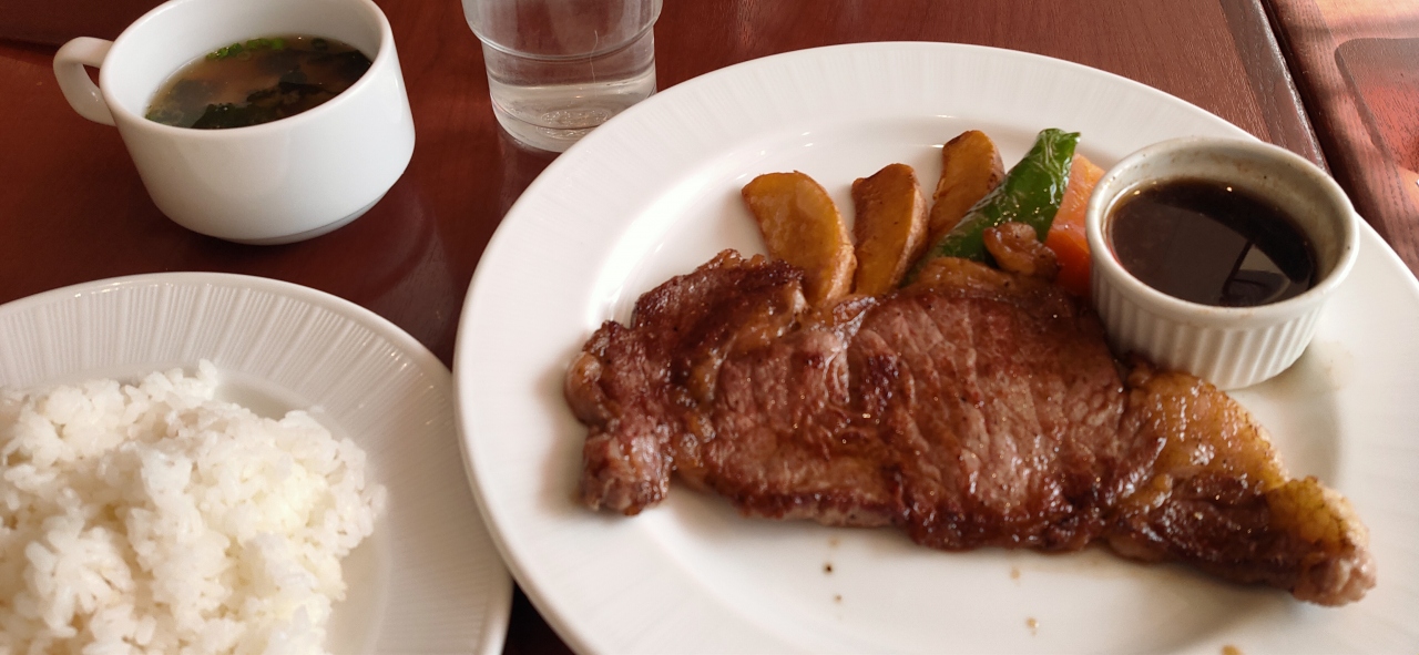 日曜日のランチメニューで、ビーフステーキを頂きました。