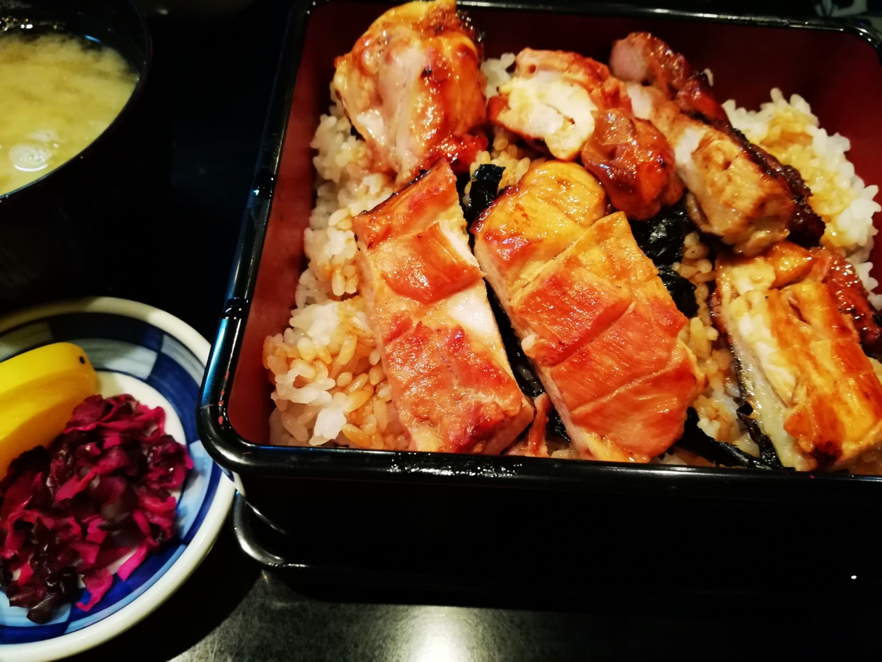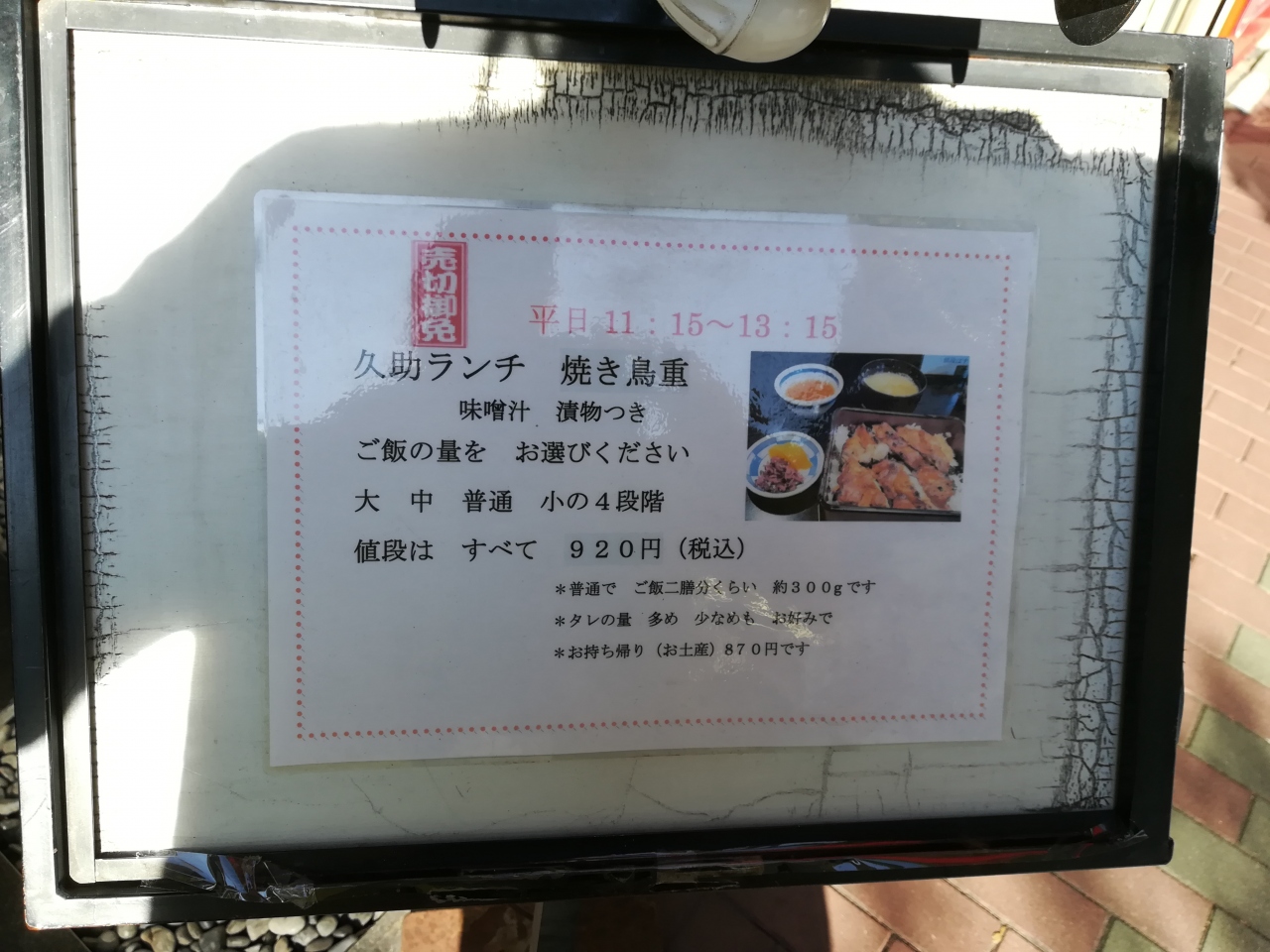 ランチは、焼き鳥重(味噌汁、漬物付き)のみ。