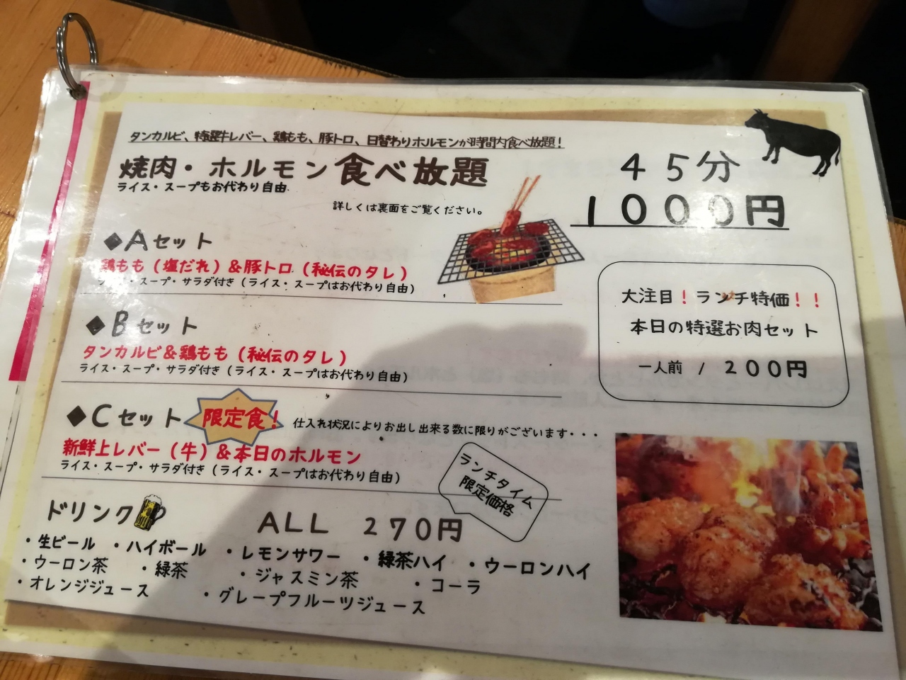 鶏肉はまだいいけど、カルビ、ホルモン他ランチの肉はがっかりでした。- 旅行時期