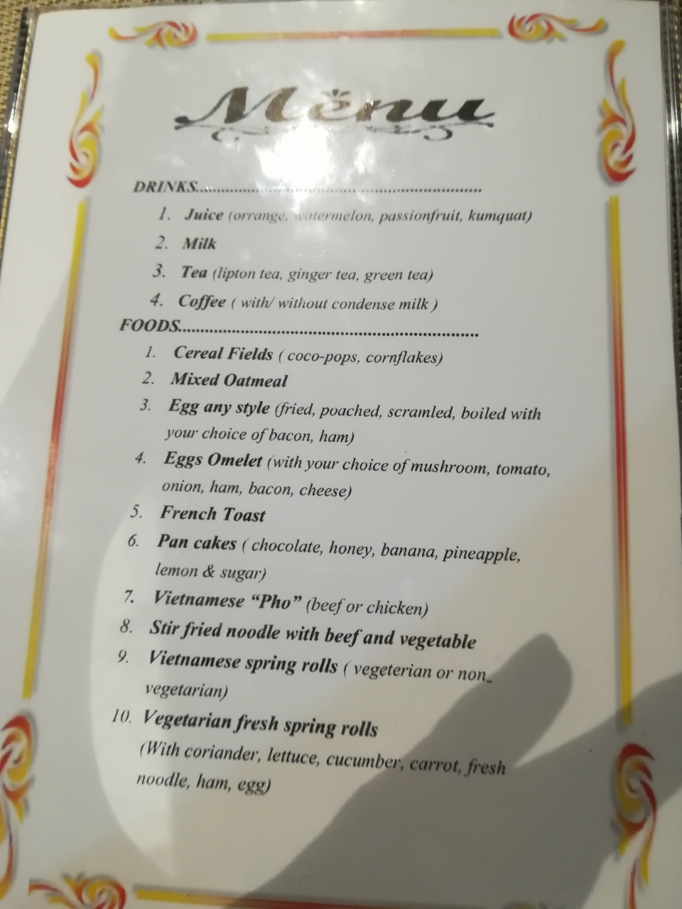 朝食のフォーはとてもおいしく、メインは1品だけ選ぶのかと思ったら、