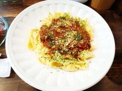 ボロネーゼパスタ(スープ・ドリンク付き)を注文。