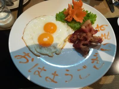 また、ホテルでの2日目の朝食では女性スタッフがお皿に