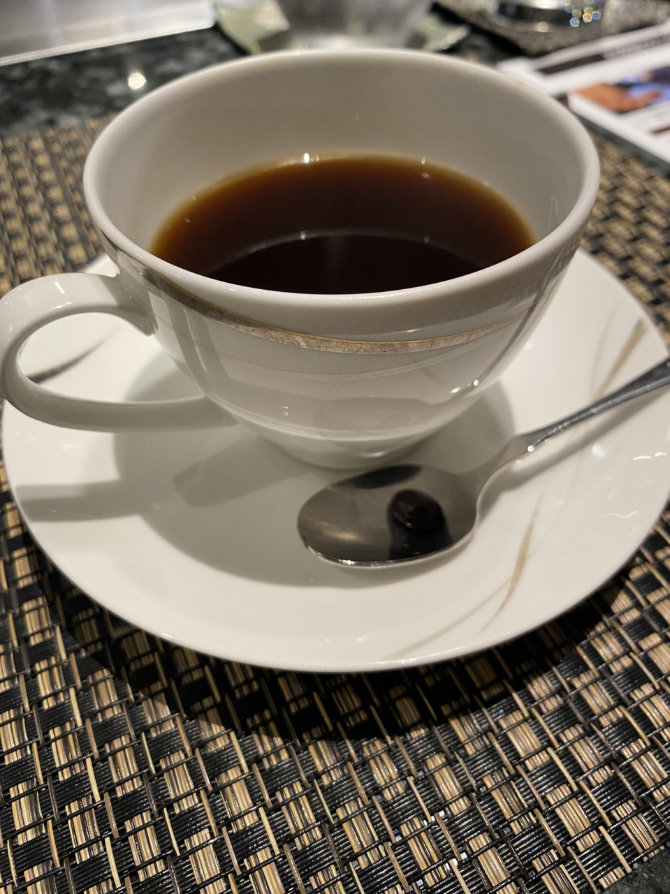食後にはコーヒーと共に食べられるコーヒー豆が添えてあり、初めて食べるコーヒー豆のお味はとても苦かったです。