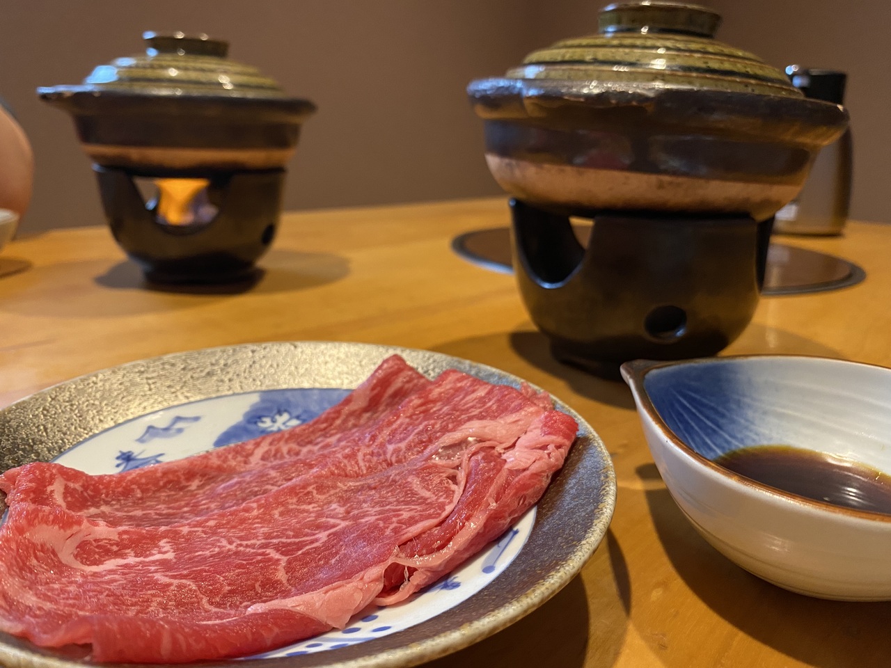 予約したもりつぢ御膳は、しゃぶしゃぶ、ステーキ、タタキ(ローストビーフ風)と伊賀牛を堪能できるメニューとなっており