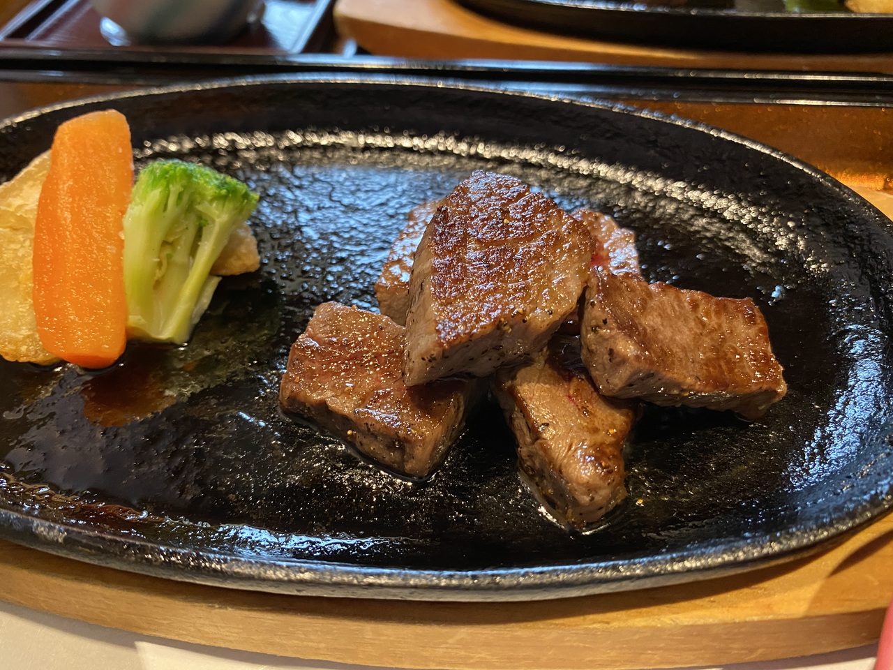 切り分けて提供されたステーキは、一切れが大きく分厚かったので食べ応えがありました。